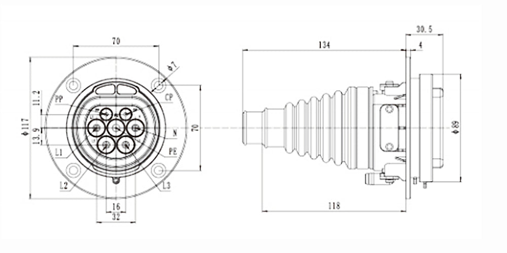 Noeifevo Typ-2-Steckdose für Elektrofahrzeuge, 16A/32A 1 Phase/3 Phase EV-Ladesteckdose