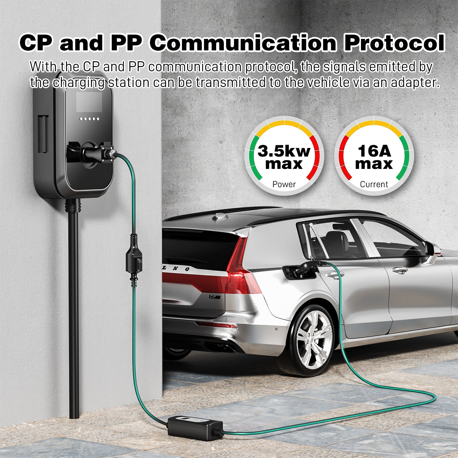 NOEIFEVO Typ 2 Stecker auf EU-Schuko-Adapter, 220 V Schuko-Steckdose für E-Bike/Roller/Elektrogerät zur Stromversorgung über EV-Ladegerät oder EV-Ladestation, Entriegelungsknopf, CP/PP