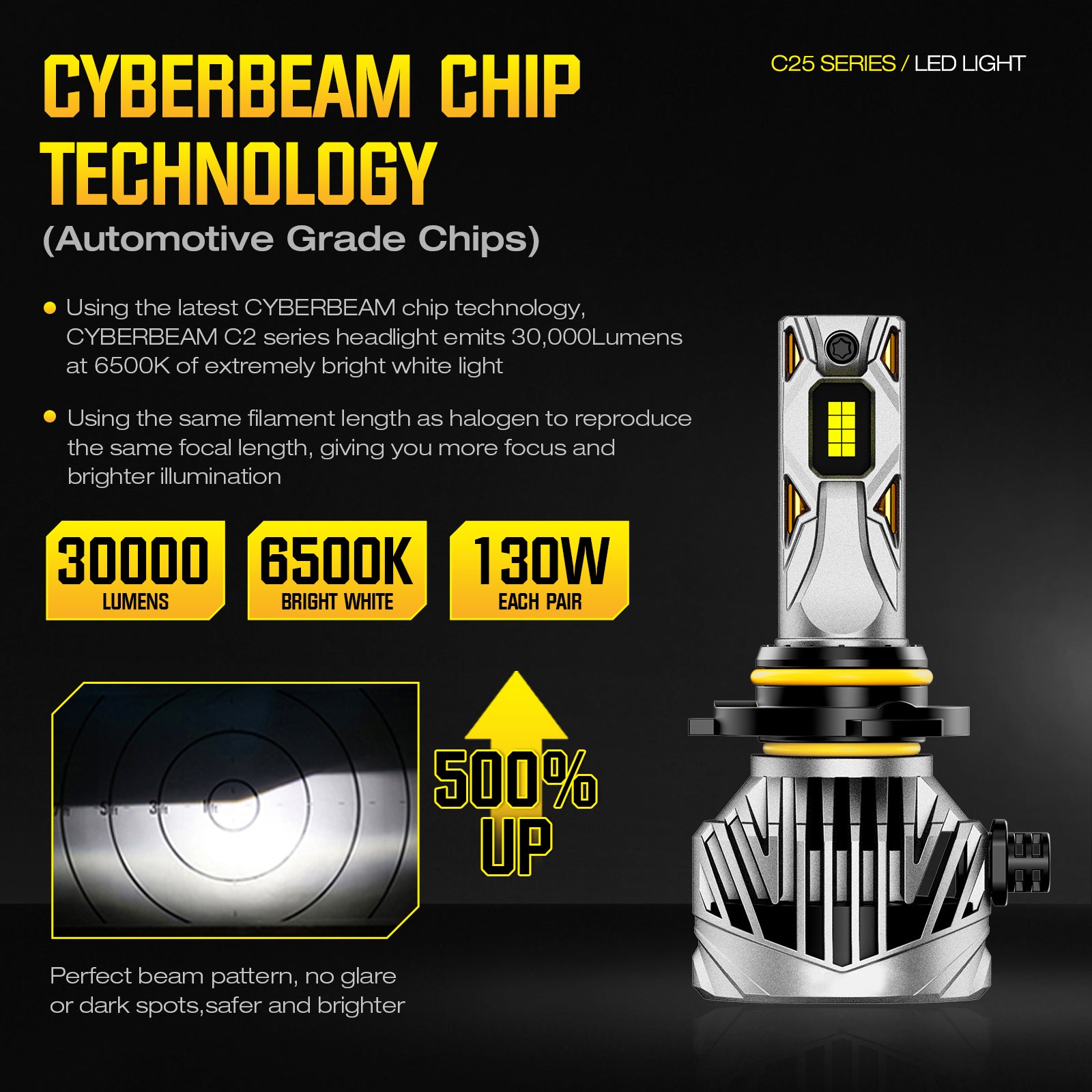 NOEIFEVO 9005 9006 Auto Scheinwerferlampe, 30.000 Lumen, 130W, 6500K Weiß, IP68 Wasserdicht, 100.000 Stunden Lebensdauer, Abblend- und Fernlicht
