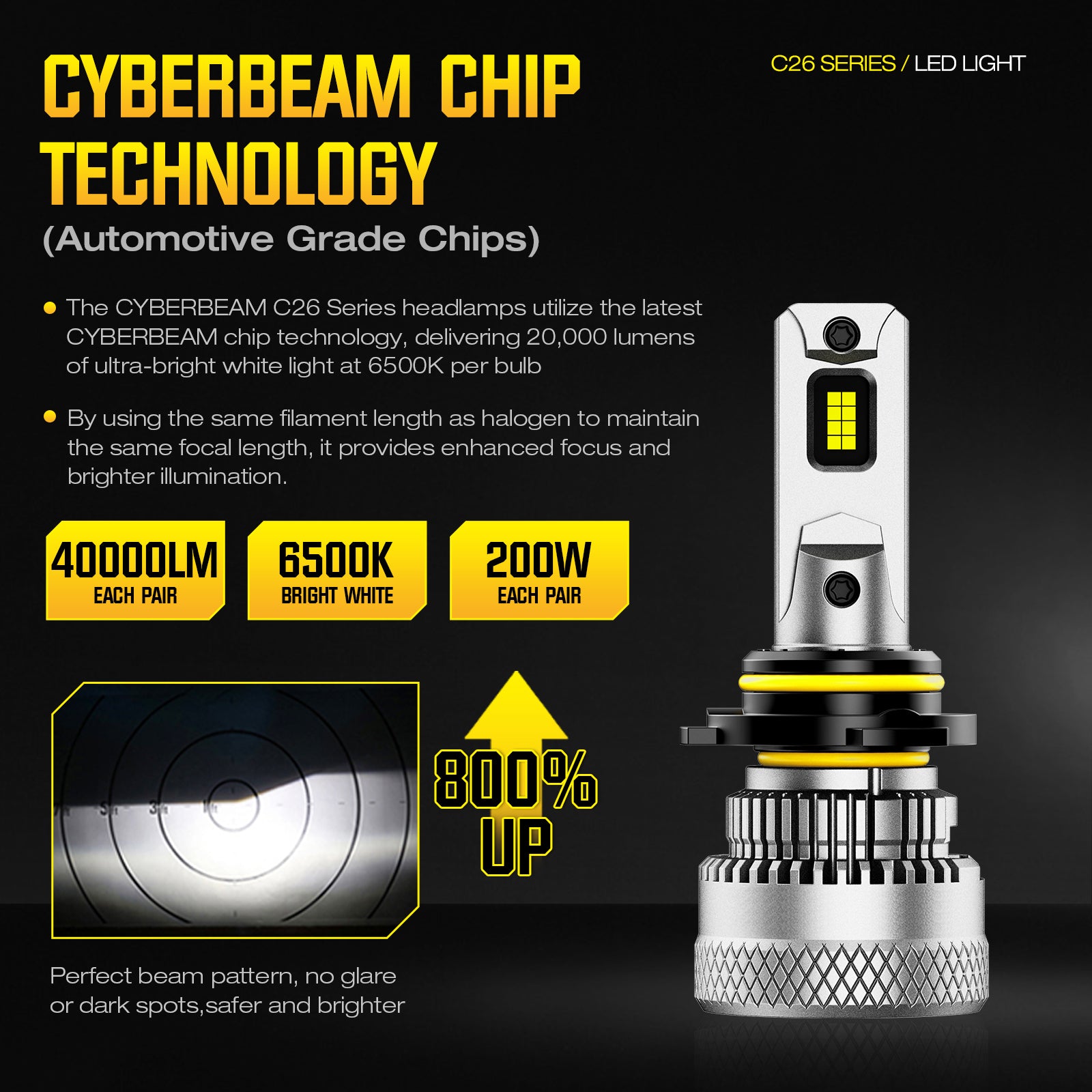 NOEIFEVO 9005 9006 Auto Scheinwerferlampe, 40.000 Lumen, 200W, 6500K Weiß, IP68 Wasserdicht, 100.000 Stunden Lebensdauer, Abblend- und Fernlicht