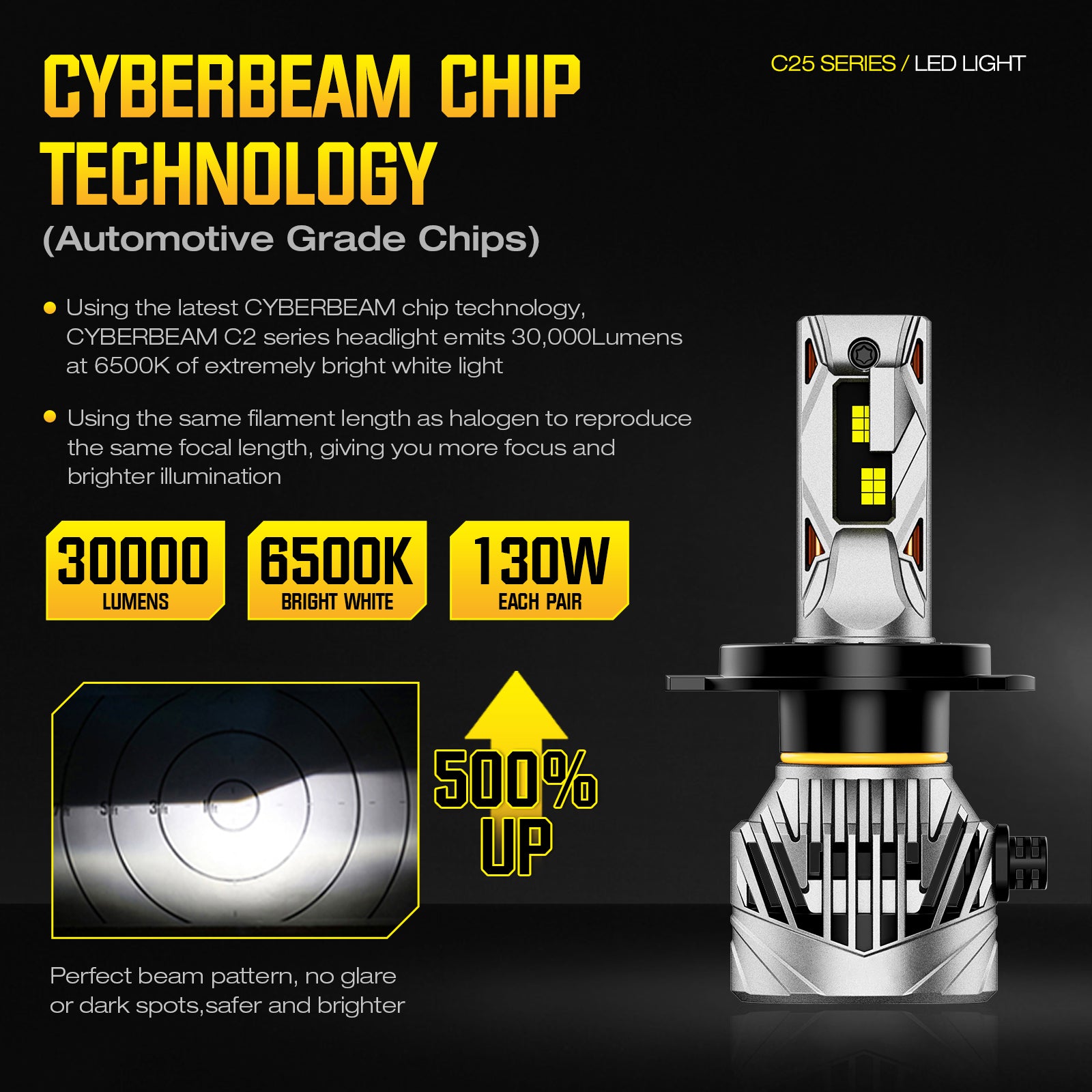 NOEIFEVO H4 Auto Scheinwerferlampe, 30.000 Lumen, 130W, 6500K Weiß, IP68 Wasserdicht, 100.000 Stunden Lebensdauer, Abblend- und Fernlicht
