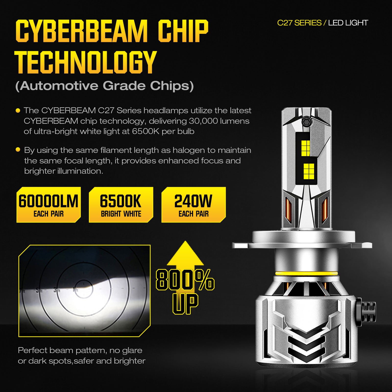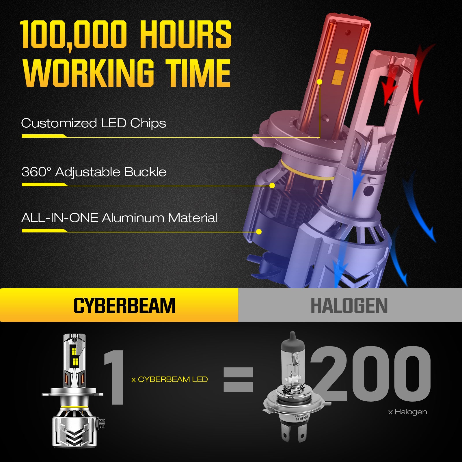 NOEIFEVO H4 Auto Scheinwerferlampe, 60.000 Lumen, 240W, 6500K Weiß, IP68 Wasserdicht, 100.000 Stunden Lebensdauer, Abblend- und Fernlicht
