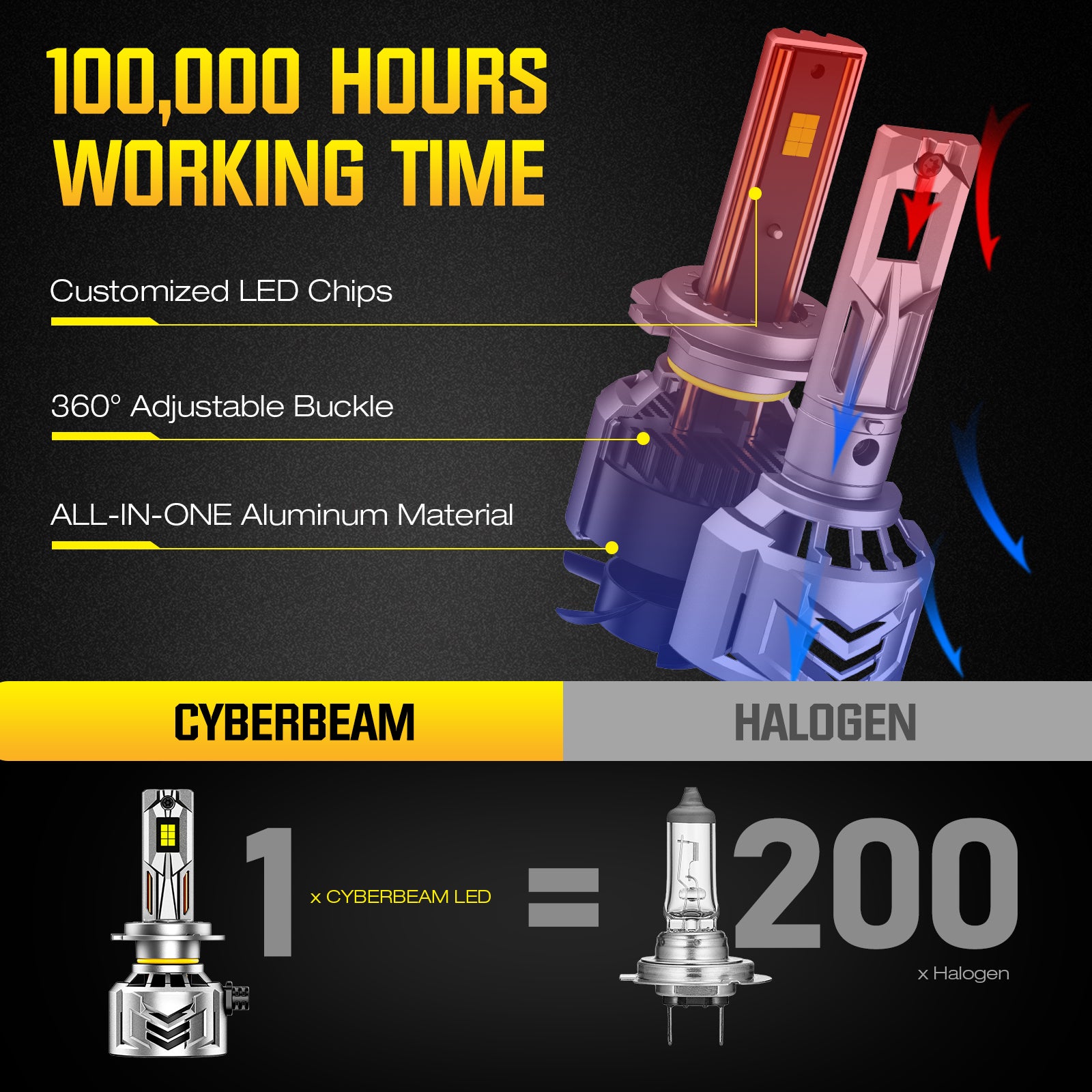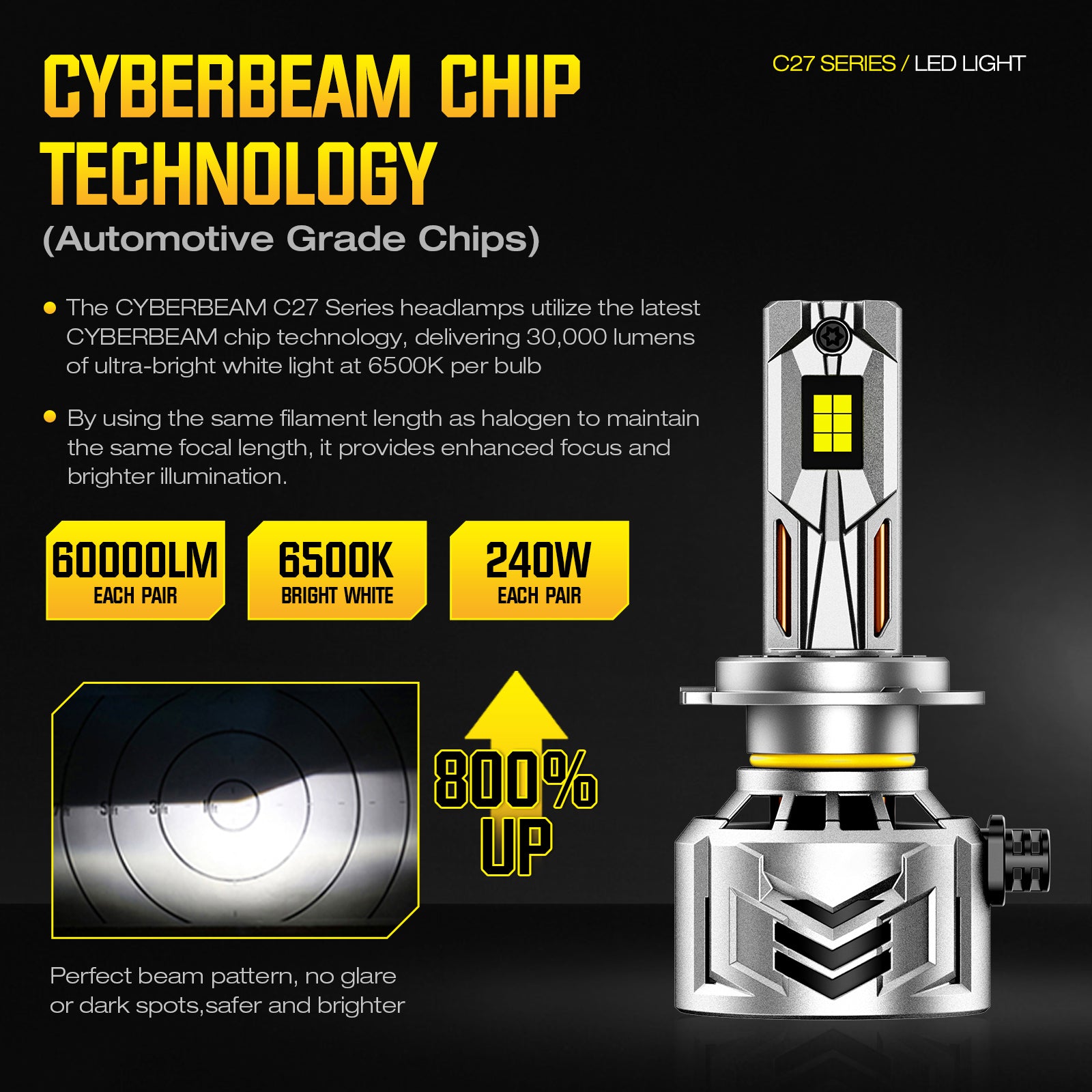 NOEIFEVO H7 Auto Scheinwerferlampe, 60.000 Lumen, 240W, 6500K Weiß, IP68 Wasserdicht, 100.000 Stunden Lebensdauer, Abblend- und Fernlicht