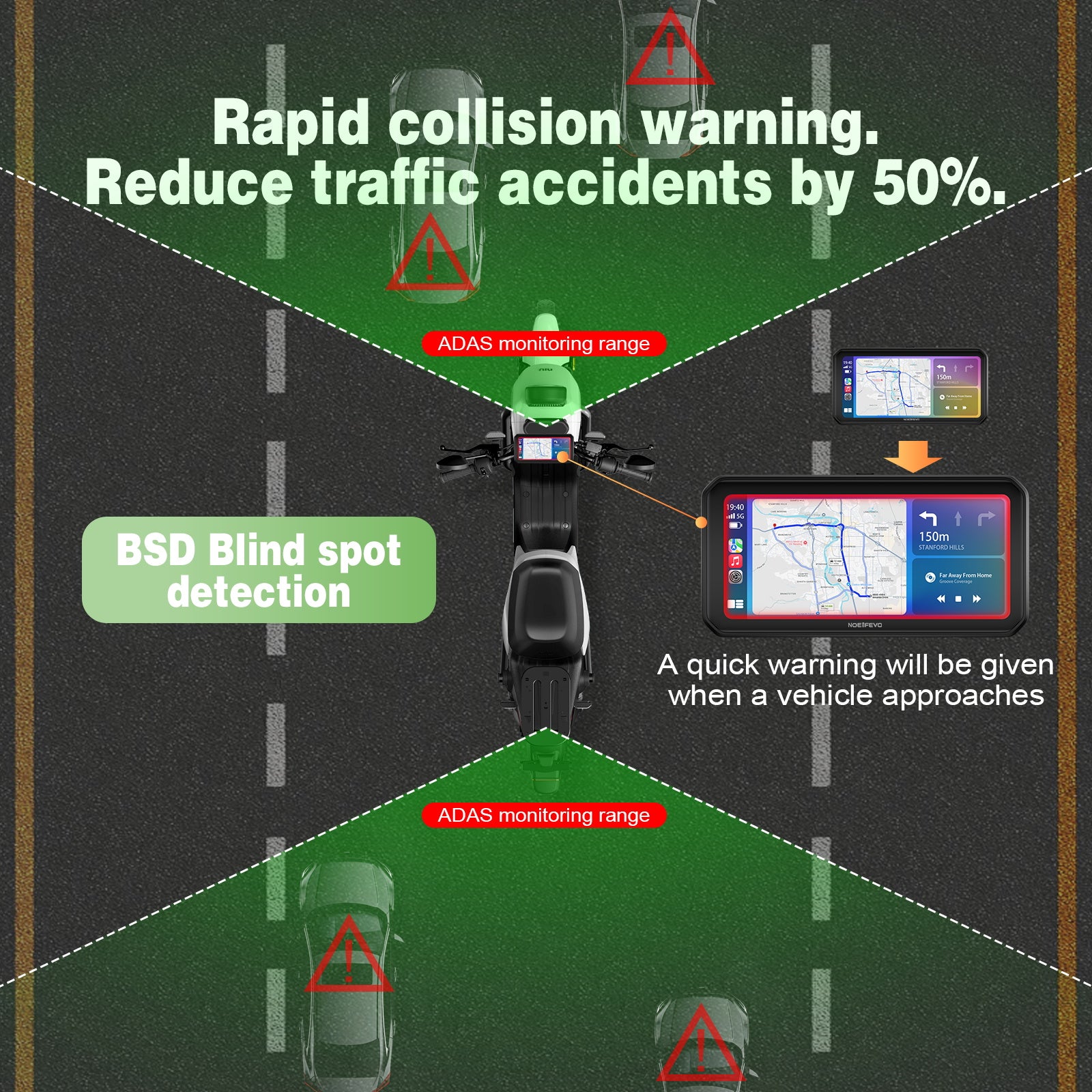 NOEIFEVO MT9B Motorrad-Carplay-Bildschirm mit Toter-Winkel-Erkennungsfunktion, kabelloses CarPlay und Android-Auto, tragbarer wasserdichter 6,3-Zoll-Touchscreen, verbessertes Dual-Bluetooth, Navigation
