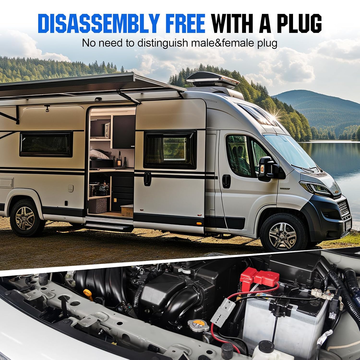2 Stück Batterieanschluss, Anderson 50A/120A auf M8 Batterie-Stromübertragungsanschluss, 2AWG/4AWG/7AWG/8AWG/12AWG Elektrokabel