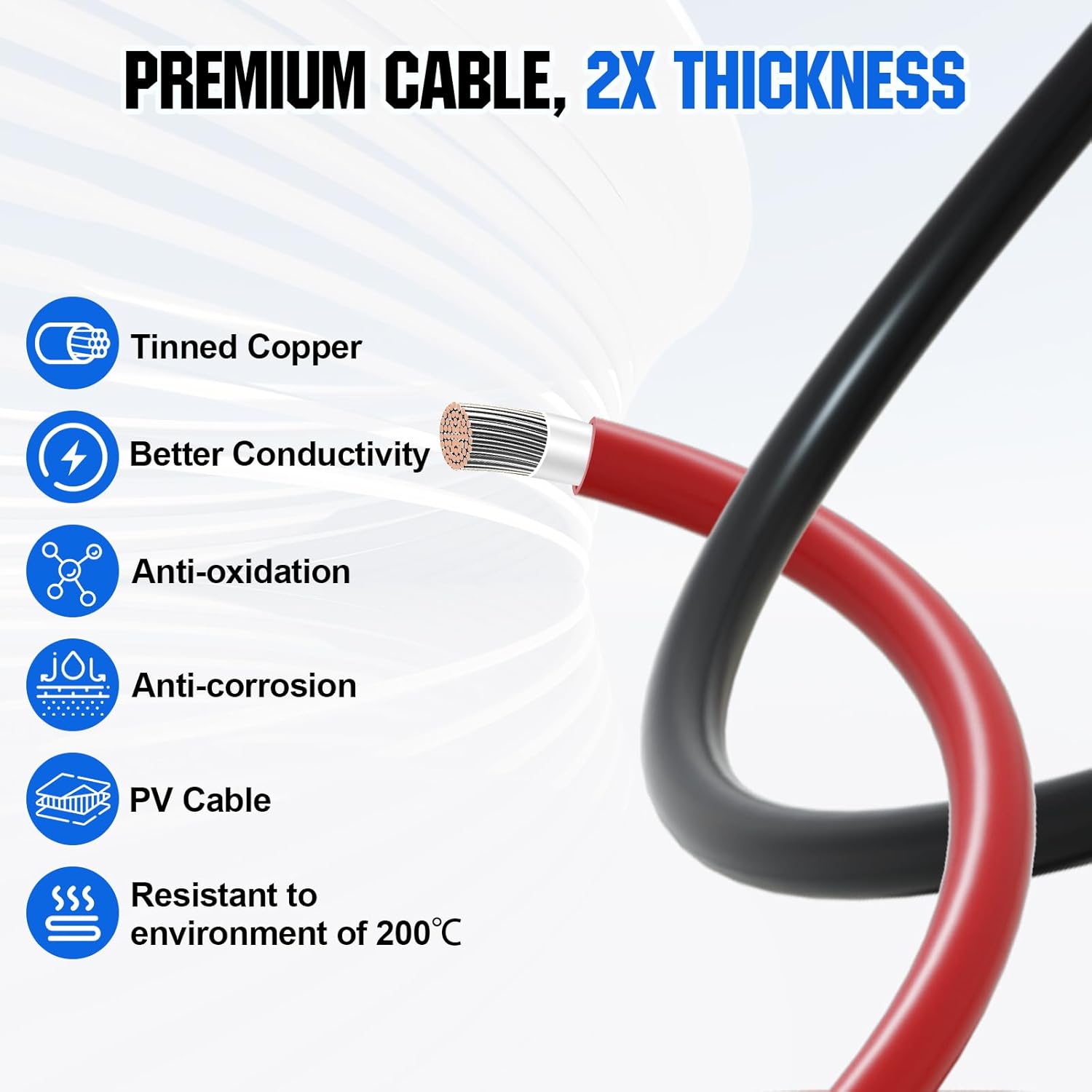 3. Langlebigkeit und Sicherheit: Das Verlängerungskabel verwendet hochwertigen, verzinnten Silikon-Kupferdraht, der extremen Umgebungen standhält. Mit einem Betriebstemperaturbereich von -50°C bis +200°C garantiert es eine bessere elektrische Leitfähigkeit und sichere Anwendung, was es zu einer idealen Wahl für Batteriesysteme macht.