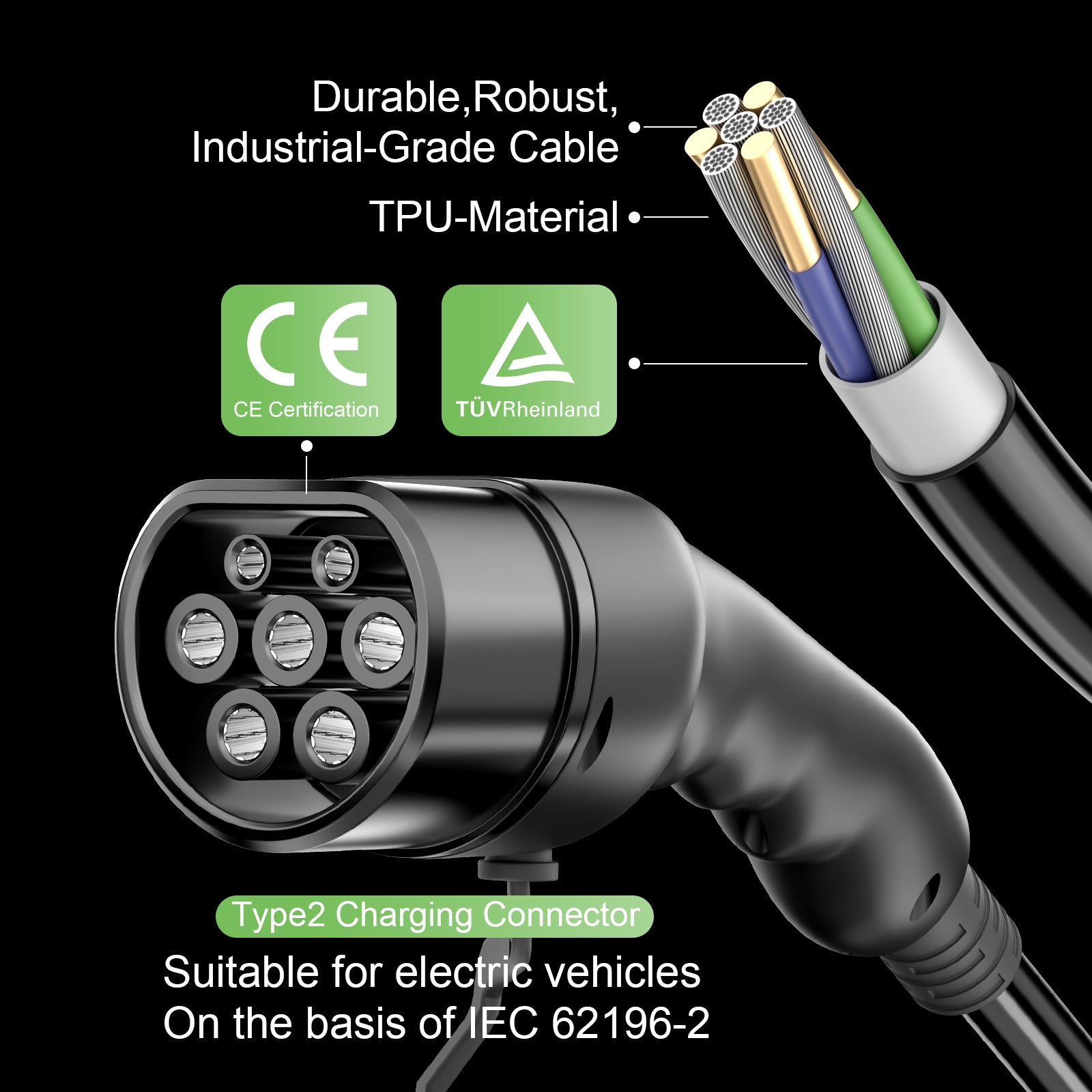 Sicherheit : Dieses EV-Ladegerät verfügt über einen integrierten Fehlerstromschutzschalter (RCD) vom Typ B und ist CE-zertifiziert, um ein sicheres Laden zu gewährleisten.