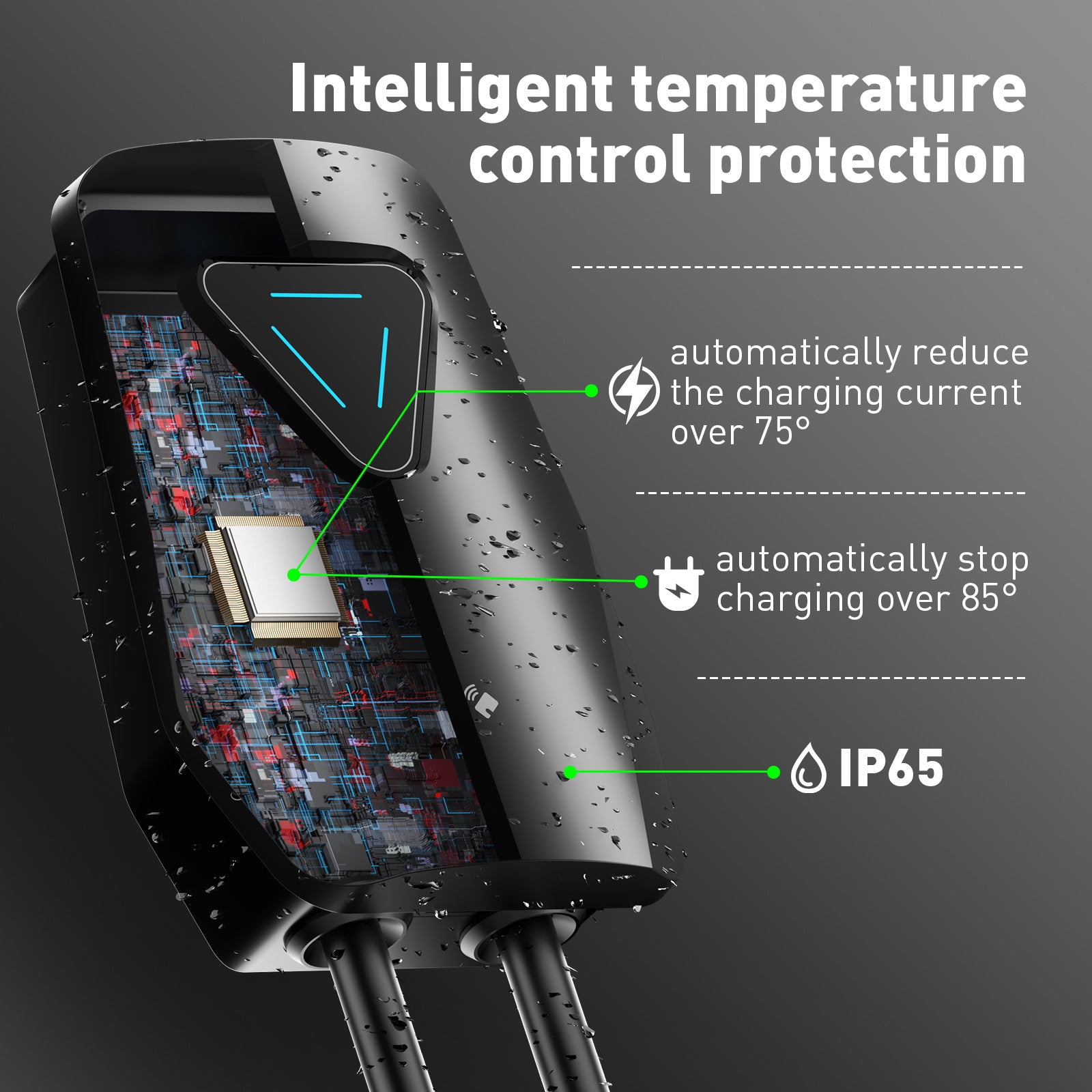 Mehrfacher Schutz: Typ A + DC 6 mA (≈Typ B) Leckageschutz. *Die Stromversorgung wird innerhalb von 0,2 Sekunden abgeschaltet, wenn die Temperatur zu hoch ist. *Genaue und effektive Überwachung der PMW-Signaländerung, Reparatur der Kondensatoreinheit und Aufrechterhaltung der Batterielebensdauer.