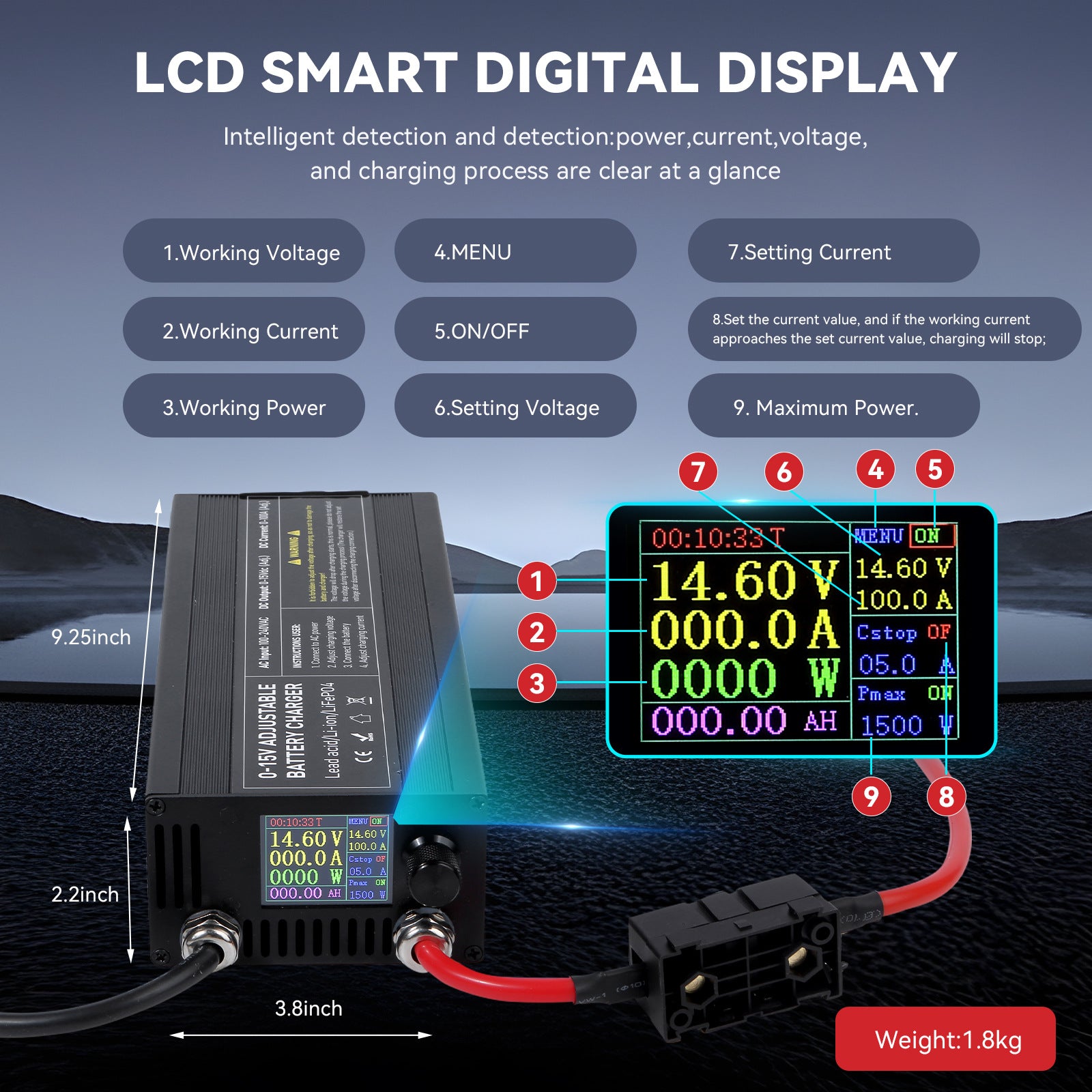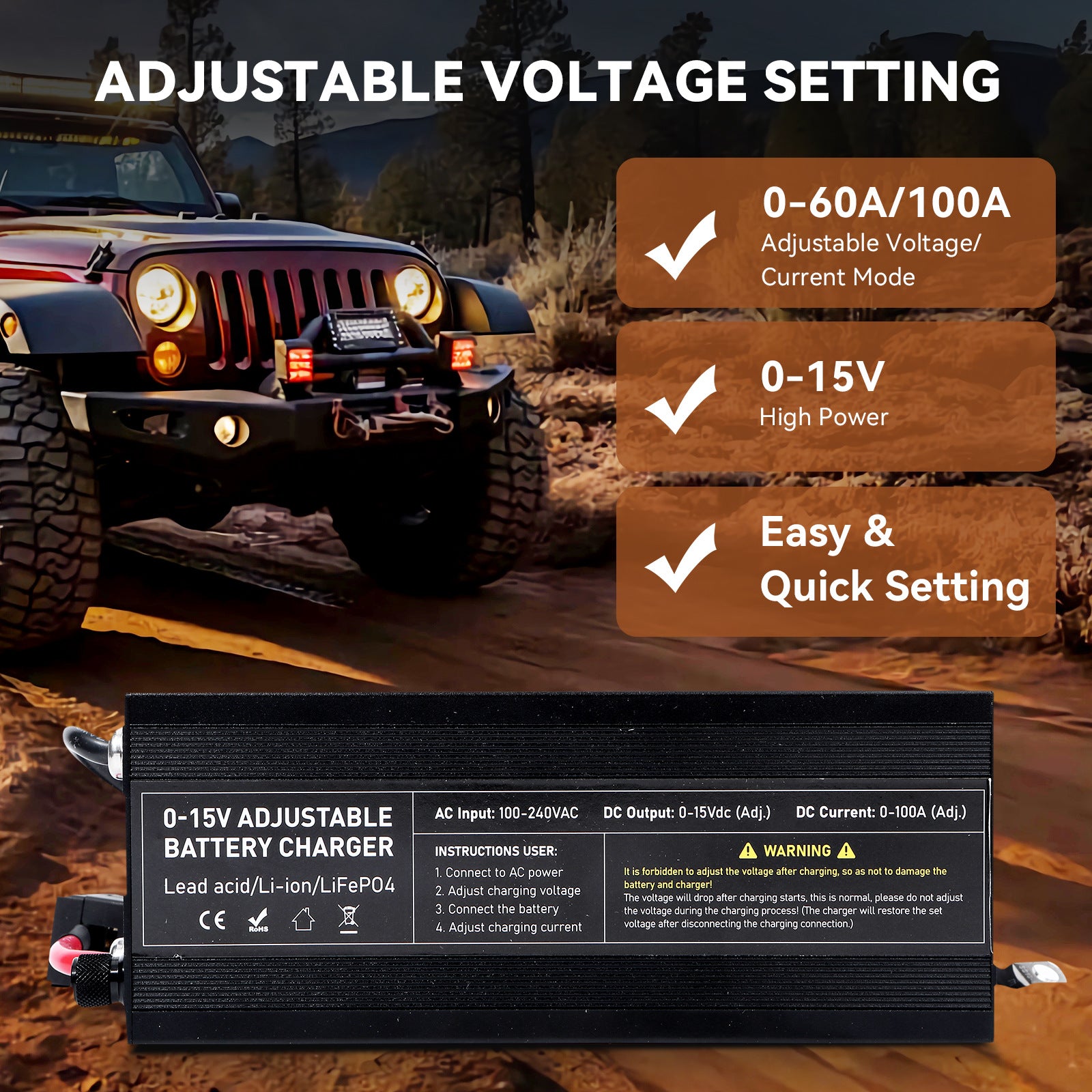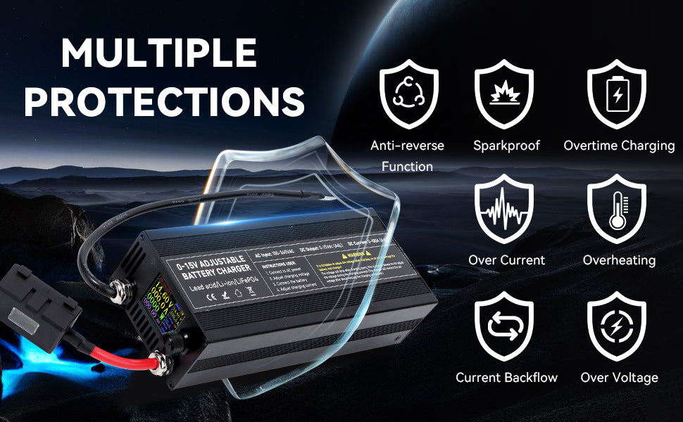 √ [Mehrfachschutz] Dieses 0-15V 100A Ladegerät verfügt über mehrere Schutzfunktionen, einschließlich Übertemperaturschutz, Überspannungsschutz, Kurzschlussschutz, Überstromschutz und Niedrigspannungsschutz, um Schäden durch unsachgemäße Nutzung zu verhindern.