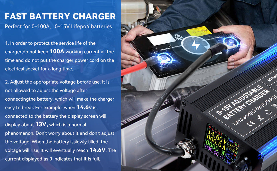 Schnellladegerät für Batterien, perfekt geeignet für 0-100A, 0-15V LiFePO4-Batterien