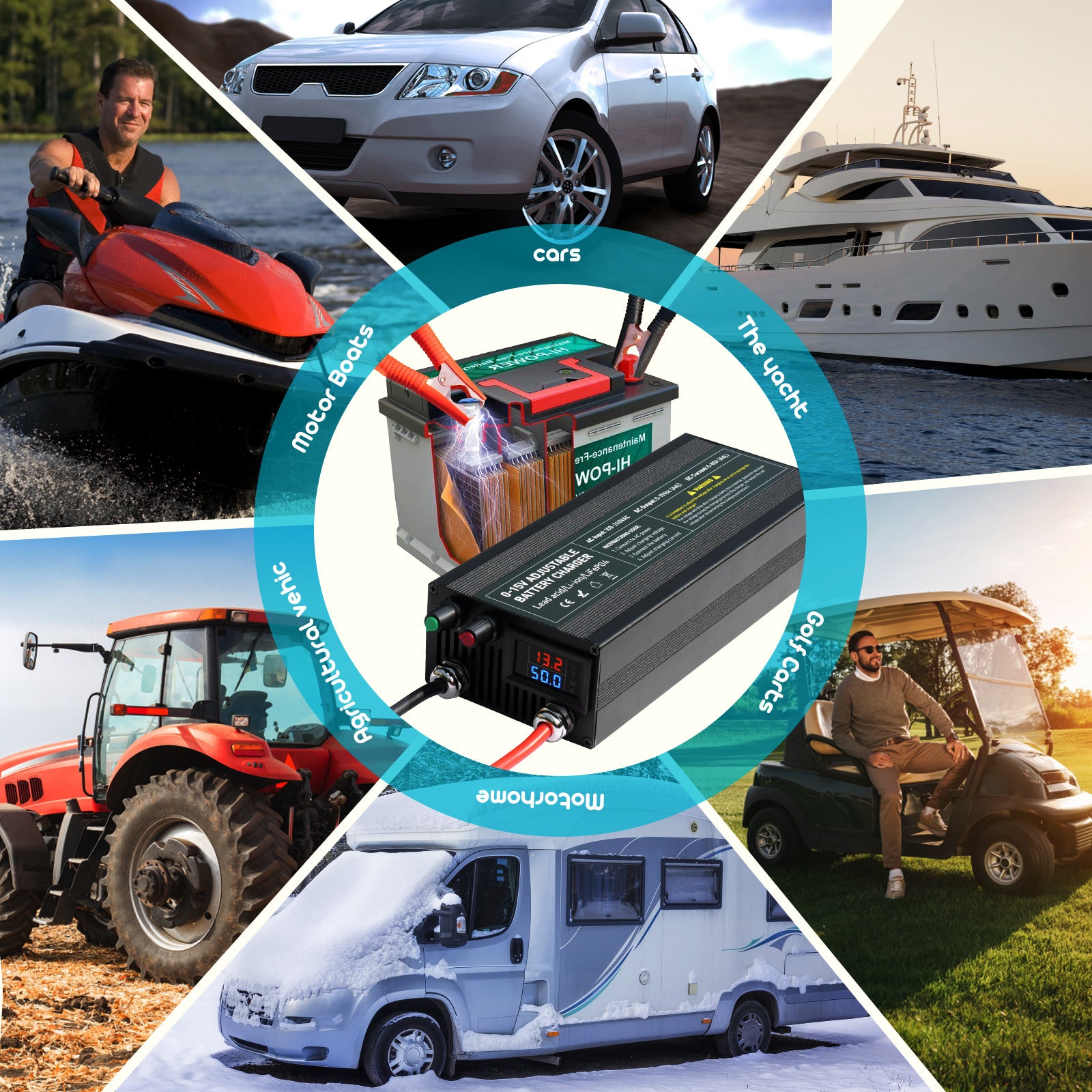 √ [Einstellbare Spannung und Strom] Das NOEIFEVO Smart Battery Charger ist für Benutzer konzipiert, die mehrere Spannungen und Batterietypen aufladen müssen. Dieses einzelne Ladegerät ist mit Lithium-Batterien, Eisen-Lithium-Batterien (LiFePO4) und Blei-Säure-Batterien kompatibel, solange die Ladespannung im Bereich von 0-15V liegt. Der einstellbare Strom reicht von 1-40A 1-60A oder 1-85A, je nach Wahl.