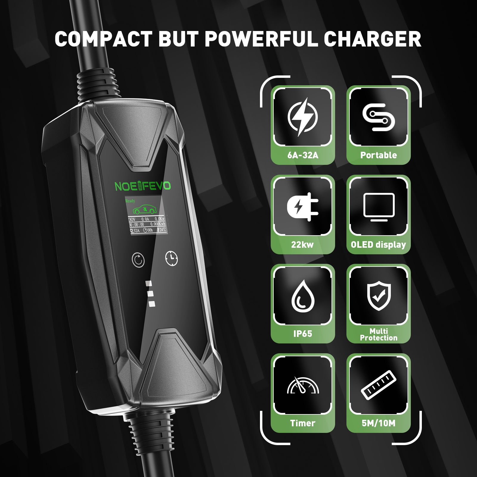 Das NOEIFEVO 22KW tragbare intelligente Ladegerät ermöglicht es Ihnen, Ihr Elektro-/Hybridfahrzeug auch fernab öffentlicher Ladestationen zu laden. Einfach Stromkabel anschließen, Ladestrom einstellen und den Ladeanschluss ins Fahrzeug stecken – der Ladevorgang beginnt automatisch. Leistungsstark, einfach zu bedienen und umweltfreundlich. Hergestellt aus nachhaltigen Materialien, bietet es ein robustes, klassisches Design und unterstützt einen CO2-reduzierten Lebensstil.
