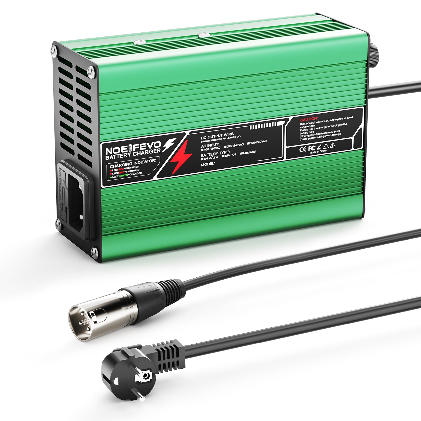 NOEIFEVO 42V 2A 3A 3.5A 4A Lithium-Ladegerät für 10S 37V Li-Ion Lipo-Batterien, Kühlventilator, automatischer Abschaltung(GREEN)